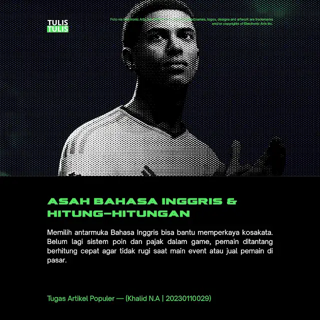 Di sisi lain, FC Mobile juga menjadi sarana untuk mengasah kemampuan bahasa Inggris. Meskipun tersedia dalam berbagai pilihan bahasa, banyak pemain secara sadar memilih untuk menggunakan antarmuka berbahasa Inggris. Tujuannya bukan hanya untuk menyesuaikan diri dengan istilah teknis yang umum digunakan secara global, tetapi juga untuk meningkatkan pemahaman kosakata secara kontekstual. Proses ini menghadirkan bentuk pembelajaran bahasa yang alami dan menyenangkan. Belajar sambil bermain.