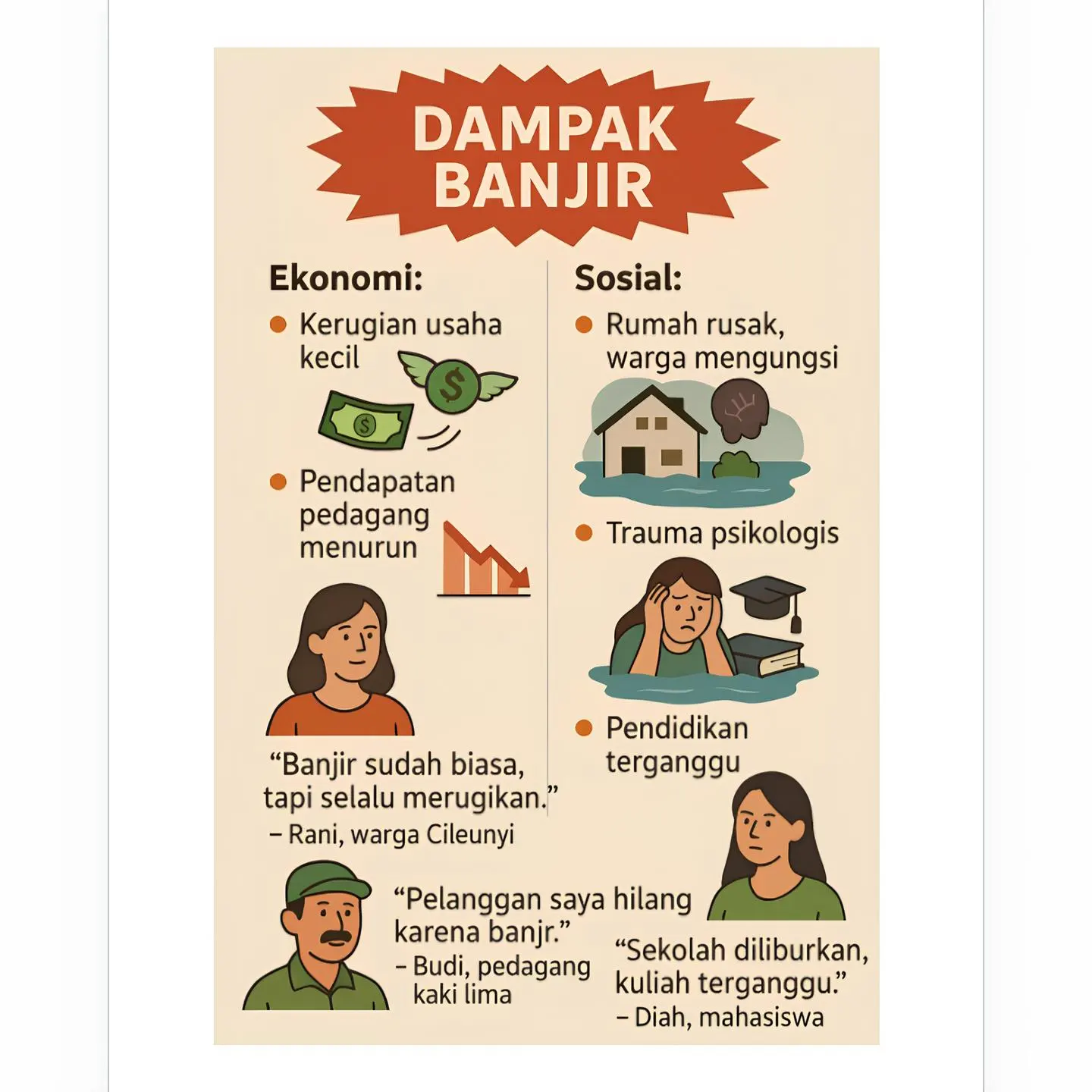 Dampak dari banjir di Bandung sangat luas dan merugikan.