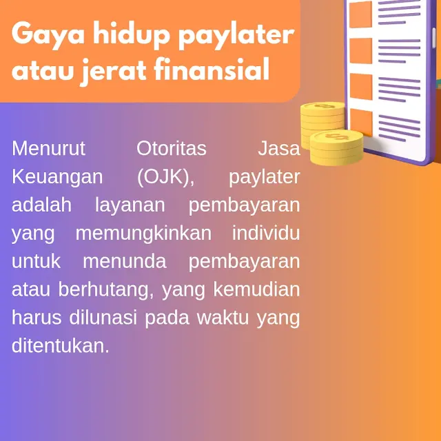 Menurut Otoritas Jasa Keuangan (OJK), paylater adalah layanan pembayaran yang memungkinkan individu untuk menunda pembayaran atau berhutang, yang kemudian harus dilunasi pada waktu yang ditentukan. Dalam praktiknya, ini mirip seperti "kredit instan" yang bisa diakses langsung dari ponsel.Fenomena ini bisa kita temui dalam kehidupan sehari-hari. Misalnya, seorang mahasiswa yang ingin membeli tiket konser idamannya tetapi belum menerima uang kiriman bulanan dari orang tua, bisa menggunakan layanan paylater agar tetap bisa menikmati acara tersebut. Atau seorang ibu rumah tangga yang sedang belanja bulanan di e-commerce, tergoda oleh promo diskon besar dan cashback menarik cukup klik "bayar nanti", barang pun langsung dikirim.Di saat darurat pun, paylater bisa jadi penyelamat. Bayangkan kamu sedang kehabisan pulsa atau paket data di tengah malam, dan ATM terdekat tidak memungkinkan untuk diakses. Dengan paylater, kamu bisa tetap terhubung tanpa harus menunggu pagi.